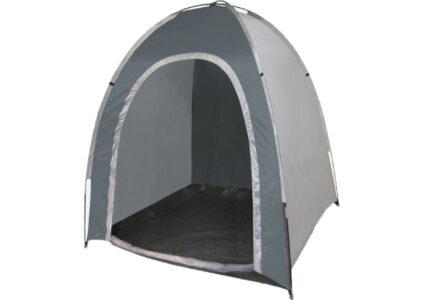 Sehr kompaktes und einfach aufzubauendes Aufbewahrungszelt. Ideal für Fahrräder, Campingsachen oder als Umzieh- oder Kochzelt, abschließbar mit einer Reißverschlusstür. Aus Polyester mit wasserdichter PU-Beschichtung. Transporthülle, Spannleinen, Heringe und Aufhängeöse für eine Laterne im Lieferumfang enthalten. Kompakt Einfach aufzubauen Wasserdichte PU-Beschichtung Inklusive Transporthülle, Spannleinen, Heringe und Aufhängeöse Technische Daten: Material: Polyester/ Glasfaser Farbe: grau Maße (L x B x…