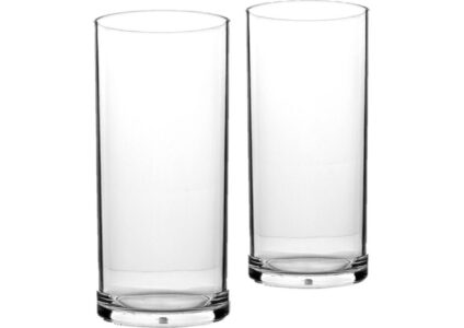 Praktisch unzerbrechliche luxuriöse Longdrinkgläser. Kratzbeständig und spülmaschinenfest. Aus 100 % Polycarbonat. spülmaschinenfest kratzbeständig Technische Daten: Material: Polycarbonat Volumen: 330 ml Lieferumfang: 2 Longdrinkglas