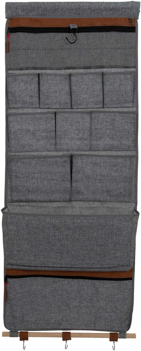 Ein modischer Multifunktions-Organizer mit 11 Staufächern aus der Urban Outdoor-Kollektion. Die Zeltschürze ist aus Oxford-Polyester gefertigt, was als Leinenoptik bezeichnet wird. Sie hat auch Details in Lederoptik. Der Organizer verfügt über Fächer in verschiedenen Größen. Außerdem verfügt der Organizer über elastische Bänder, Haken und zusätzlichen Stauraum auf der Rückseite. Er kann mit Klettverschluss, einer Sehne, an den Aufhängeösen oder am Haken befestigt werden.Eleganter und multifunktionaler…