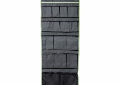Multifunktionaler Organizer mit Spiegel und 16 Taschen. Ideal für Zelt oder Wohnwagen. 2 große Taschen, 1 großes Netz, 6 mittlere Taschen, 8 kleine Taschen 1 Spiegel Verschiedene Aufhängmöglichkeiten Inklusive Schlaufen an der Unterseite für zusätzliche Befestigung Technische Daten: Material: Polyester Farbe: grau Maße (L x B): 123 x 48 cm Gewicht: 500 g