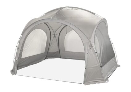 Bo-Camp Party Shelter Pavillon aus hochwertigem Polyester mit versiegelten Nähten. Inklusive 4 Seitenwände zum Öffnen und Schließen. Leicht aufzubauen Hochwertiges Polyester mit versiegelten Nähten 3 Seitenwände mit PVC-Fenstern 1 Seitenwand mit moskitofestem Netz Technische Daten: Material: Stahl/ Polyester Fabre: beige Maße (L x B x H): 300 x 300 x 240 cm Gewicht: 6,0 kg Wassersäule: 1200 ml