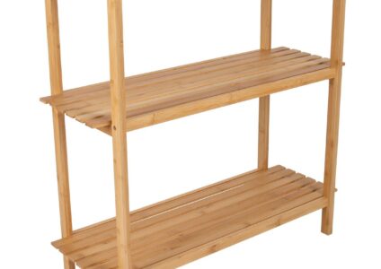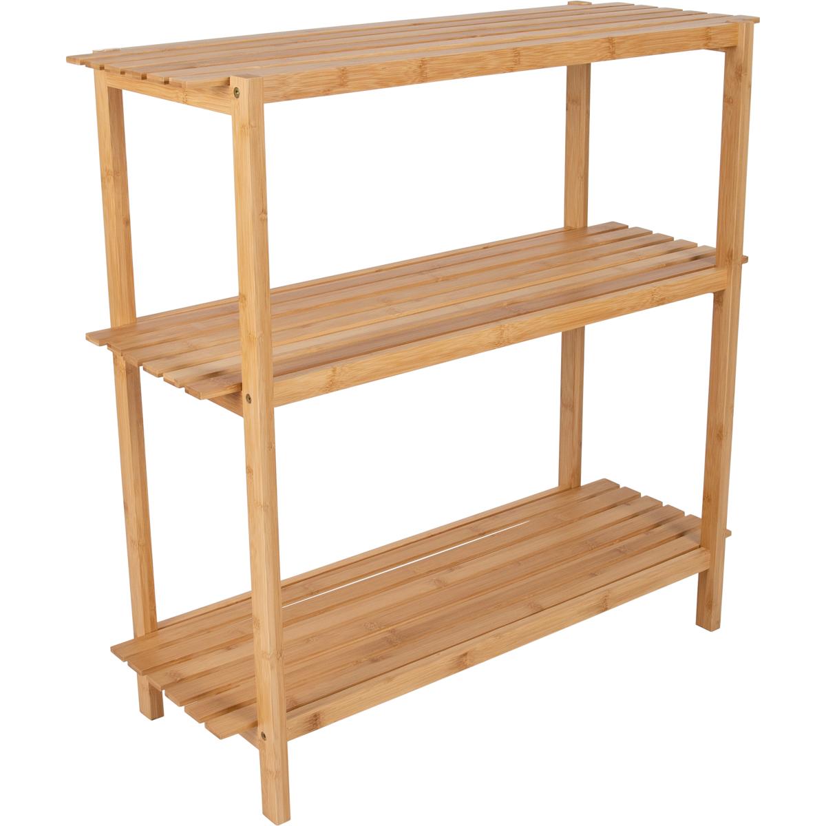 Ein stilvolles Regal mit 3 Ablageflächen. Das Regal ist aus stabilem Bambus. So sind die Gegenstände leicht zu verstauen. Ideal für im Zelt, auf dem Balkon, oder auch in der Wohnung, zum Beispiel im Bad. 3 Ablageflächen aus stabilem Bambus für im Zelt, zu Hause im Bad, in der Küche oder auf dem Balkon Technische Daten: Produktbreite: 30 cm Produktlänge: 80 cm Produkthöhe: 80 cm Gewicht: 5,75 kg Material: Bambus Lieferumfang: 1 Regal