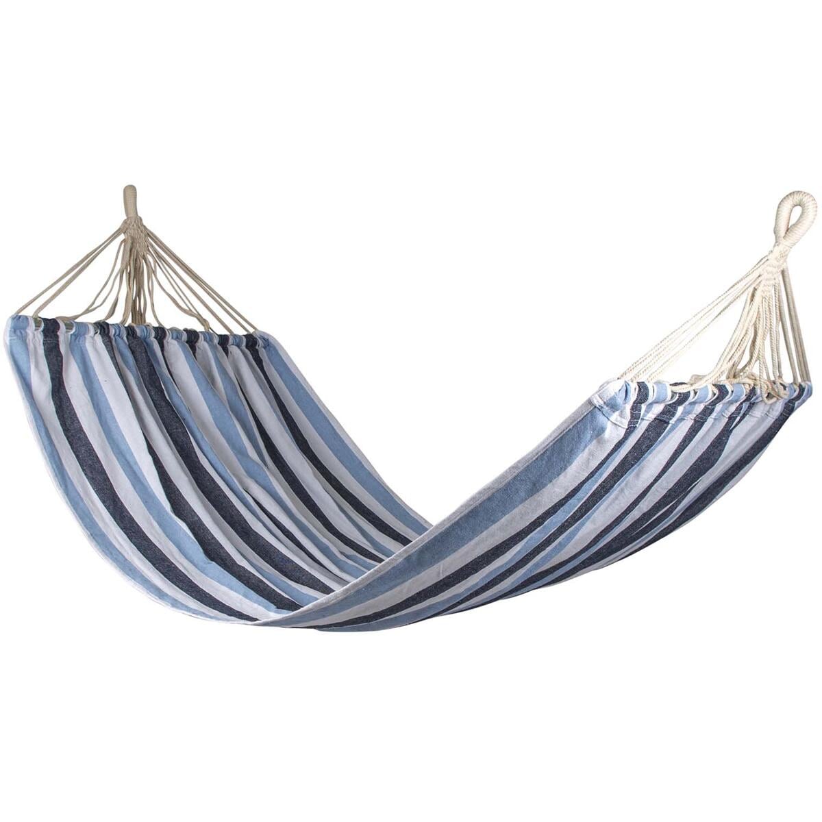 Liegefläche 230×140 cm Ohne Stange In Tragetasche Technische Daten: Material: Baumwolle Polyester Produktlänge: 300 cm Produktbreite: 140 cm Gewicht: 1,4 kg Maximale Belastung: 120 kg Farbe: blau