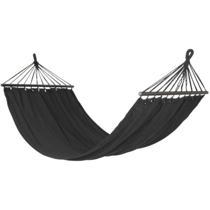 Sehr luxuriöse und komfortable Hängematte. Solide Qualität aus Baumwolle/Polyester für drinnen und draußen. Inklusive einer 100 cm langen Spreizstange für einen schönen stabilen Stand. Der Spreizstab hält die Hängematte immer schön offen. Technische Daten: Material: Baumwolle Polyester Produktlänge: 320 cm Produktbreite: 120 cm Gewicht: 2,35 kg Maximale Belastung: 120 kg Farbe: schwarz
