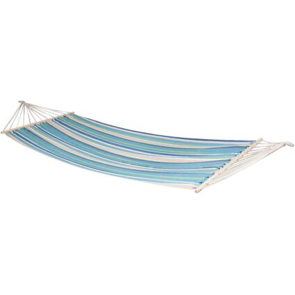 Sehr geräumige und komfortable Hängematte. Besonders solide Hängematte aus einem Polyester-/Baumwollgewebe, das sich sowohl für den Innen- als auch Außenbereich eignet. Inklusive Spreizstab von 118 cm für eine wunderbare stabile Lage. Die Hängematte bleibt wegen des ausladenden Stabes immer offen. Technische Daten: Material: Baumwolle Polyester Produktlänge: 320 cm Produktbreite: 140 cm Gewicht: 3,1 kg Maximale Belastung: 140 kg Farbe: grün