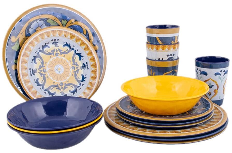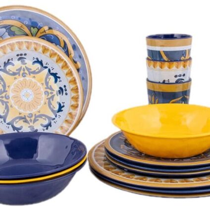 Ein stilvolles 16-teiliges Geschirrset im sizilianischen StilDas Geschirr besteht zu 100 % aus Melamin. Melamingeschirr ist praktisch unzerbrechlich, sehr leicht, kratzfest und spülmaschinenfest. Das schöne Set ist perfekt für 4 Personen und umfasst 4 Essteller, 4 Frühstücksteller, 4 Schüsseln und 4 Becher. Ideal zum Mitnehmen auf den Campingplatz und im Garten. Für Lebensmittel zugelassen. Das Geschirrset lässt sich perfekt mit den Sicilian Wassergläsern und Weingläsern kombinieren.Praktisch…