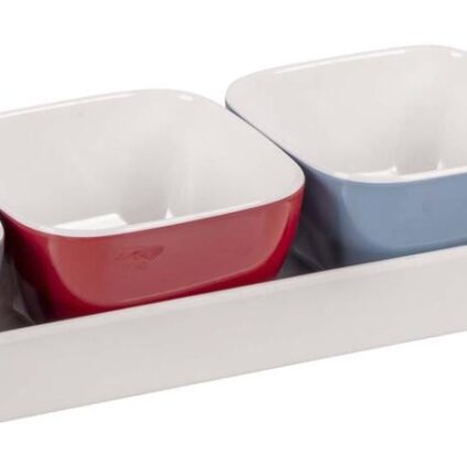 Praktisch unzerbrechliche und kratzfeste Schalen mit Tablett. unzerbrechlich und kratzfest mit Tablett Reinigung: Schmutz und Flecken mit Spülmittel entfernen keine Scheuermittel oder Topfkratzer benutzen Technische Daten: Material: Melamin Produktlänge: 35,5 cm Produktbreite: 9 cm Produkthöhe: 5 cm Gewicht: 0,4 kg Farbe: mehrfarbig Lieferumfang: 4 Schalen 1 Tablett