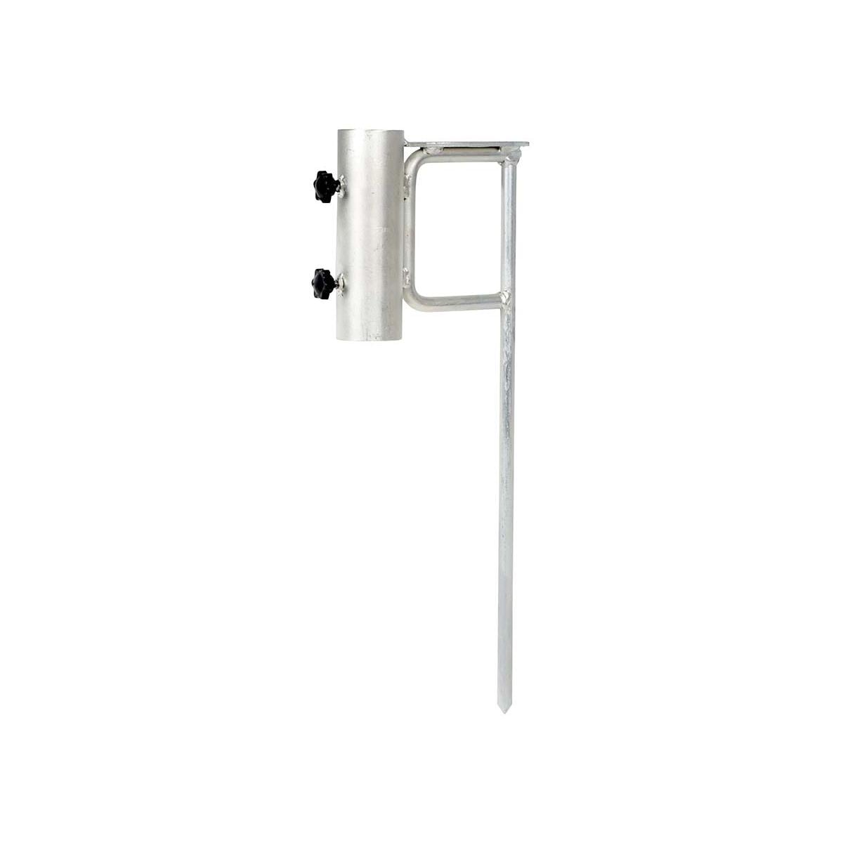 Sonnenschirmstift aus sehr stabiler Qualität. Mit Stellschraube zur soliden Befestigung des Sonnenschirms. Geeignet für Sonnenschirme mit einem Durchmesser bis 42 mm. Besonders geeignet für den Boden. Kann mit einem Hammer in den Boden geschlagen werden. Technische Daten: Material: Stahl Produkthöhe: 45 cm Durchmesser: Ø 4,2 cm Gewicht: 1,1 kg Farbe: silber
