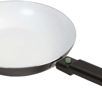 Eine kompakte Bratpfanne mit einer Keramikbeschichtung. Diese Pfanne hat einen abnehmbaren Griff und ist daher platzsparend. Die Keramikbeschichtung verhindert das Anhaften, ist kratzfest und leicht zu reinigen. Außerdem ist es gesünder zu kochen, da weniger Fett zum Braten benötigt wird. geeignet für Gas-, Keramik- und Elektroherde abnhembarer Griff Technische Daten: Material: Aluminium Produktlänge: 26 cm Produktbreite: 26 cm Produkthöhe: 4 cm Durchmesser: Ø 26 cm Gewicht: 0,5 kg Farbe: schwarz