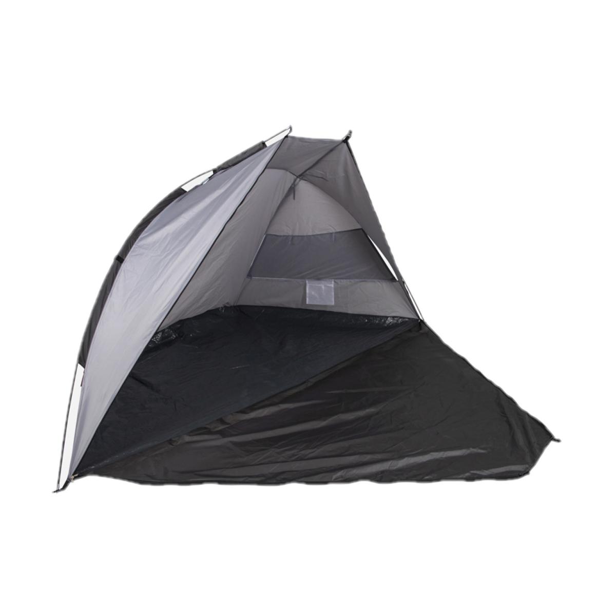 Schnell und einfach aufzubauende Strandmuschel mit Fenster zur Belüftung robust abschließbar inklusive Pflöcke und Tragetasche mit Fenster an der Seite zur Belüftung Technische Daten: Material: 170T Polyester und PE Bodendecke Farbe: grau Maße (L x B x H): 240 x 120 x 120 cm Maße gefaltet (L x B x H): 58 x 24 x 48 cm Gewicht: 1,68 kg