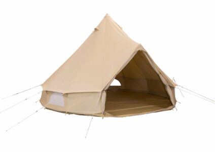 Ein klassisches Bell-Zelt. Ein äußerst beliebtes Sahara Zelt mit einer großen Bodenfläche und hohem Bedienungskomfort. Der Durchmesser dieses Zeltes ist 4 Meter und die höhe beträgt 2,5 Meter. Dies macht das Zelt geeignet für bis zu 6 Personen. Hergestellt aus hochwertigem Segeltuch, 100% Baumwolle (285g/m²), und einer 540 Gramm schweren PVC-Bodenplane. Beide sind wasserabweisend, verrottungsfest und schimmelresistent. Die Bodenplane ist mit einem Reißverschluss vollständig abnehmbar. Außerdem können…