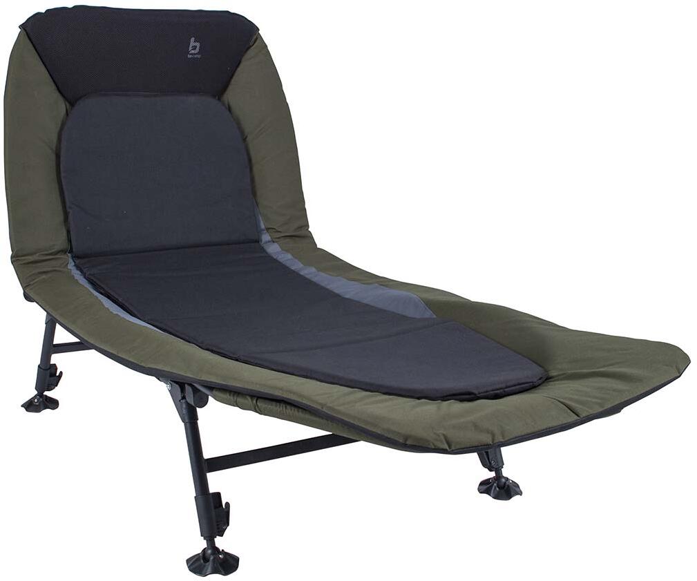 Ein sehr robustes und bequemes Campingbett, sehr gut geeignet für Angler. Die Polsterung besteht aus robustem 600D Oxford Polyester und das Gestell aus starkem Stahl. Kann aufgrund der verstellbaren Rückenlehne sowohl liegend als auch im Sitzen verwendet werden. Auch mit einem abnehmbaren Kissen versehen. Geeignet für jeden Untergrund aufgrund der unabhängig verstellbaren und verstärkten Füße. Ideal für die unebene Uferpromenade. Das Feldbett ist vollständig klappbar. robustes und bequemes Feldbett sehr…