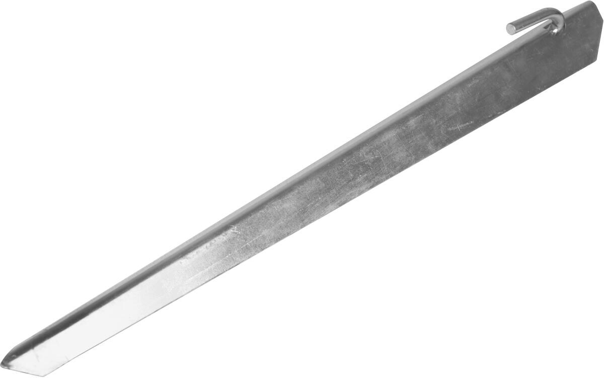 Sturmhering für Sturmband. Dieser Hering ist in der Lage, Sturmbänder fest zu befestigen. Hierdurch kann die Öse eines Sturmbandes an dem Wirbel befestigt werden. Beständig gegen extreme Zugkräfte Zur stabilen Befestigung eines Sturmgurtes Technische Daten: Produktlänge: 38cm Produktbreite: 4cm Gewicht: 0,1 kg Farbe: Silber Material: Stahl Lieferumfang: 1 Sturmhering
