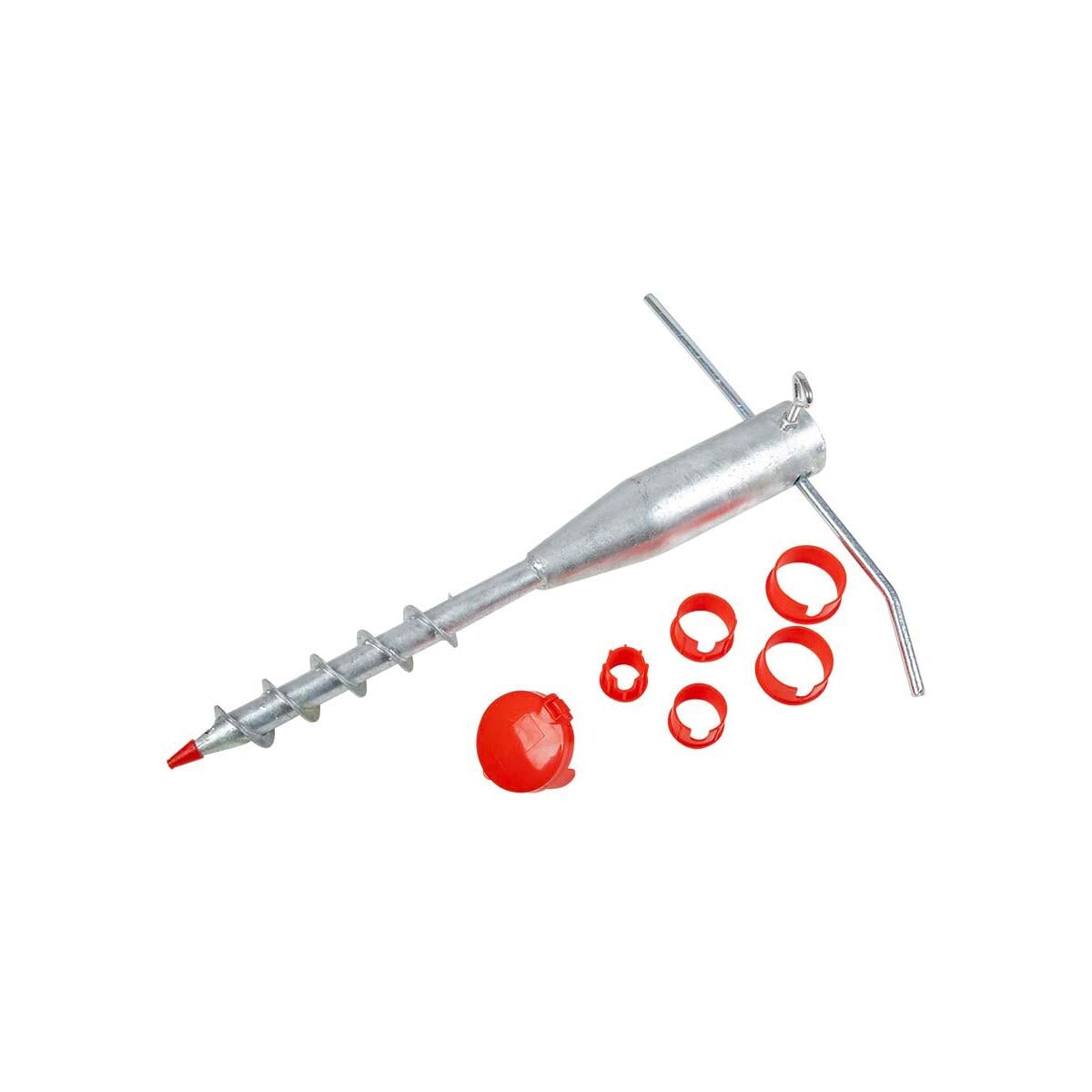 Sehr solider Sonnenschirmbohrer. Aus solidem und hochwertigem Metall. Inklusive Verschlusskappe und 5 Unterlegscheiben. Geeignet für Sonnenschirme mit einem Durchmesser von 2,5 bis 6,3 cm. Mit der Einstellschraube ist der Sonnenschirm fest verschlossen. Technische Daten: Material: Stahl Produkthöhe: 57 cm Durchmesser: Ø 6,3 cm Gewicht: 1,3 kg Farbe: silber