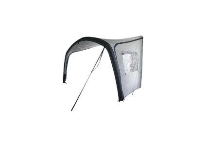 Ein einfach und schnell aufzubauendes Wohnwagen-Vordach mit Luftschläuchen. zum Befestigen an einer Sehne der Wohnwagenschiene hergestellt aus luxuriösem 150D Polyester mit UV-beständiger und wasserdichter PU-Beschichtung Technische Daten Material: Polyester Produktlänge: 400 cm Produktbreite: 245 cm Produkthöhe: 210-245 cm Packmaße: (LxBxH) 30 x 67 x 24 cm Farbe: grau Gewicht: 6.8 Kg Lieferumfang Wohnwagen-Vordach Transportkoffer Abspannseile Heringe Pumpe mit Manometer Optionales Zubehör: Bo-Camp…