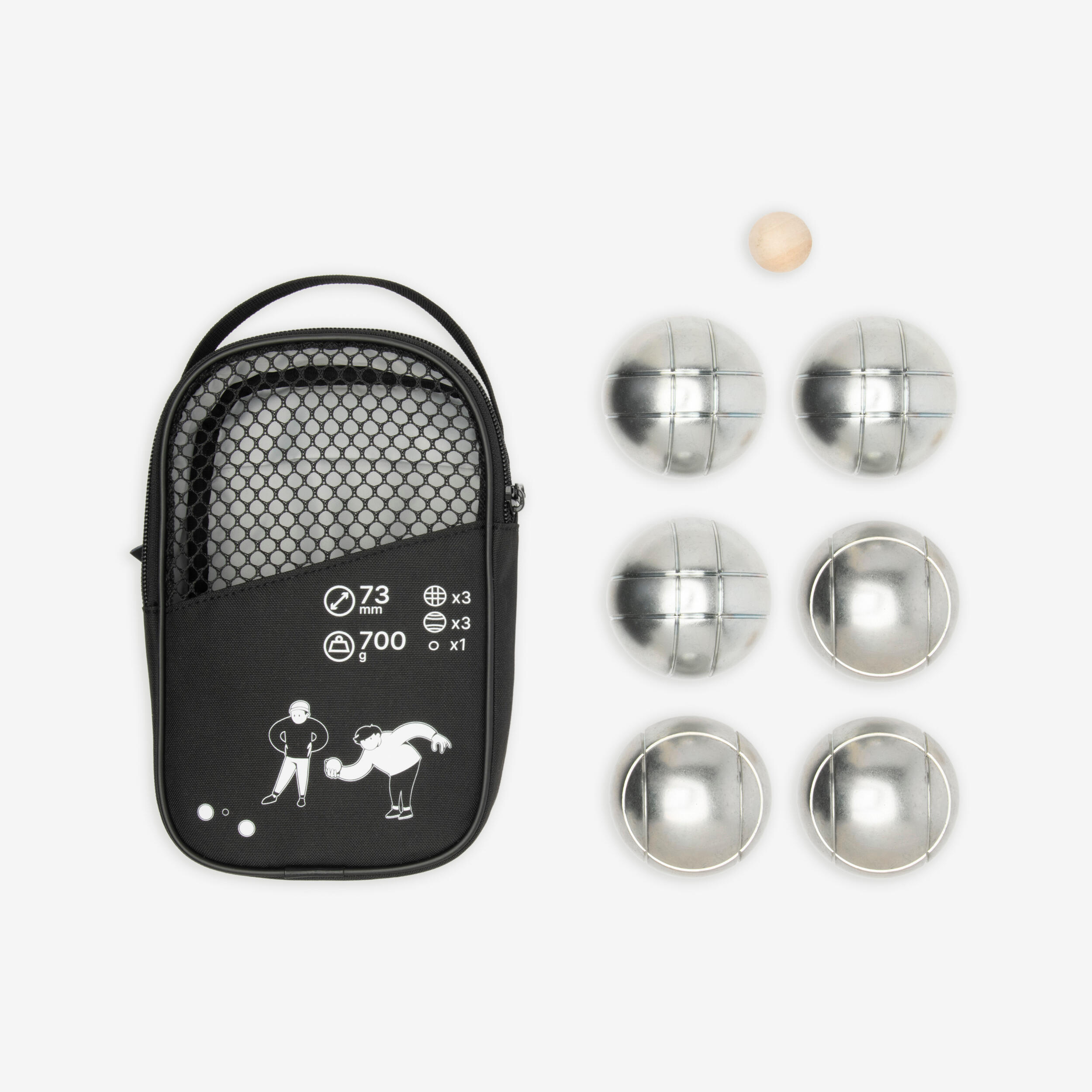 6 Kugeln, 1 Cochonnet und eine Hülle – mit diesem Set hast du alles, was du brauchst, um eine Partie Boule zu starten! Jetzt musst du nur noch einen Spielpartner finden. Ready to use::Spielfertiges Boule-Set für 2 Erwachsene.|Kompatibilität::Kugel kann mit Kugel-Magneten aufgesammelt werden.|Einfache Handhabung::Das Gewicht und die Größe der Kugeln sind für alle Erwachsenenhände geeignet.|Einfacher Transport::Die 6 Kugeln + Zielkugel können in der Hülle verstaut u. transportiert werden.