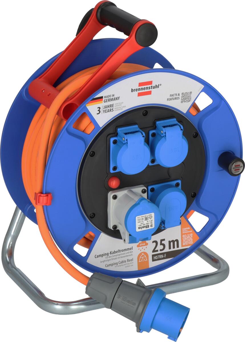 Brennenstuhl Garant CEE IP44 Camping-/Maritim Kabeltrommel 25m H07RN-F 3G2,5, 1xCEE230V/16A, 3xSchutzkontakt-Steckdosen