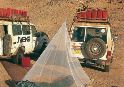 Baldachinförmiges Netz aus feinstem und besonders leichtem Polyamid. Liegt auf dem Bett auf. Sehr kleines Packmaß. Befestigung durch Schlaufen an der oberen Pyramidenspitze und an den unteren Ecken helfen diese beim Abdichten des Netzes um die Matratze. kleines Packmaß leichtes Polyamid Technische Daten: Material: Polyamid Form: Pyramide Maschenbreite: Mesh 1000 Maße: 2,5 x 2,5 x 2,3 m Gewicht: 330 g Personenanzahl: 2