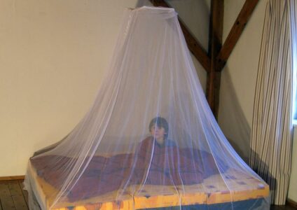 Baldachinförmige Moskitonetze aus Polyester in zwei Größen: für Einzelbetten und schmale Doppelbetten bzw. für große Doppelbetten oder zwei aneinander gestellte Einzelbetten. Technische Daten: Material: Polyester Form: Baldachin Maschenweite: Mesh 160 – 176 Maße: Umfang 12 m / Höhe 2,5 m Gewicht: 740 g Personenanzahl: 2