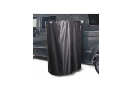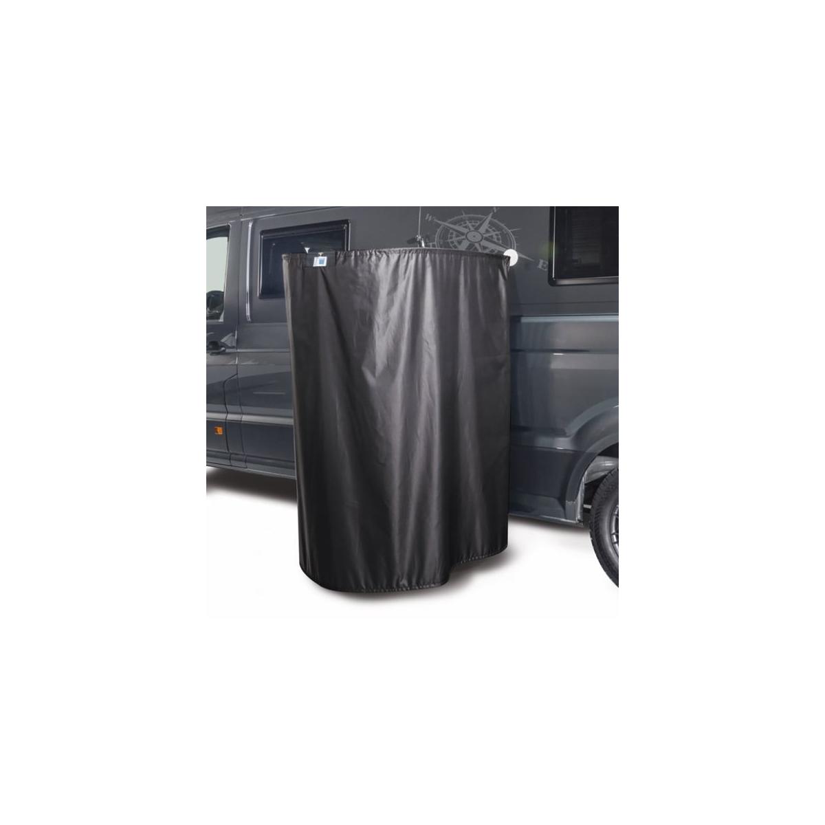Outdoor-Duschvorhang, platzsparend, für das Außen-Duscherlebnis. Kein Verkratzen des Lacks dank Magnetbefestigung. Technische Daten: Farbe: schwarz Material: Edelstahl Höhe: 160 cm Durchmesser: 90 cm Gewicht: 2,6 kg Packmaß: 115 x 39 x 14 cm Lieferumfang: Duschvorhang Edelstahlbogen klappbar Magnetbefestigung Halterung für Duschkopf magnetisch (1 x 43er Magnet gummiert, 2 x ø 88 mm Magnet gummiert, weiß) Montageanleitung und Transporttasche