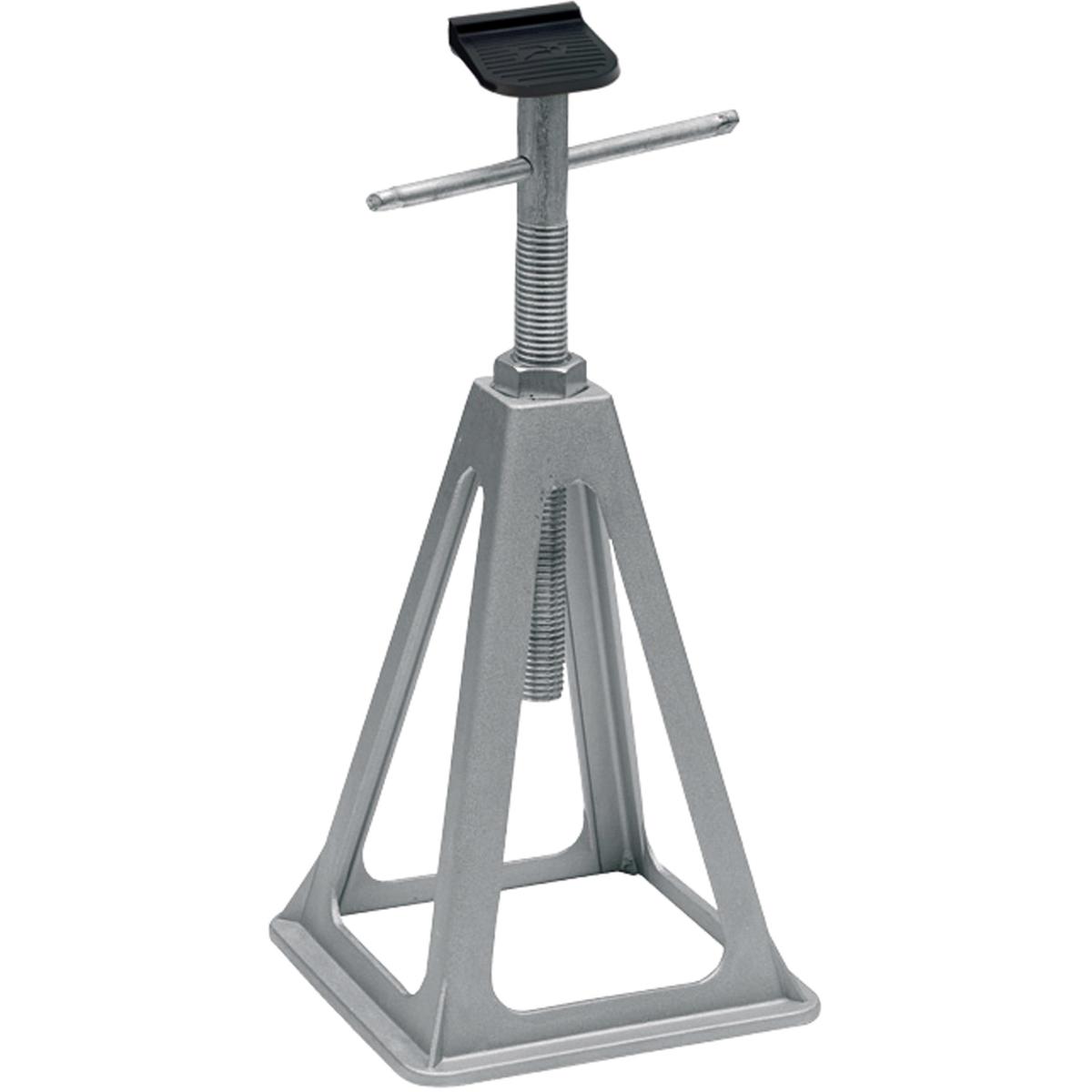Alu-Stützbockset mit abgewinkelter, L-formiger Auflageplatte aus verzinktem Stahl und rutschhemmender Schutzabdeckung aus weichem Kunsstoff. Sehr stabile und stapelbare Konstruktion. Technische Daten: Tragfähigkeit: 1,5 t / Jack Gewicht: 2x 3,2 kg Maße: 16 x 16 x H29/42 cm Lieferumfang: Alu-Stützbockset, 2er-Set
