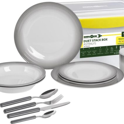 Brunner Astralys Melamin-Geschirrset, 2-Personen, 18-teilig – Camping Wagner Edition