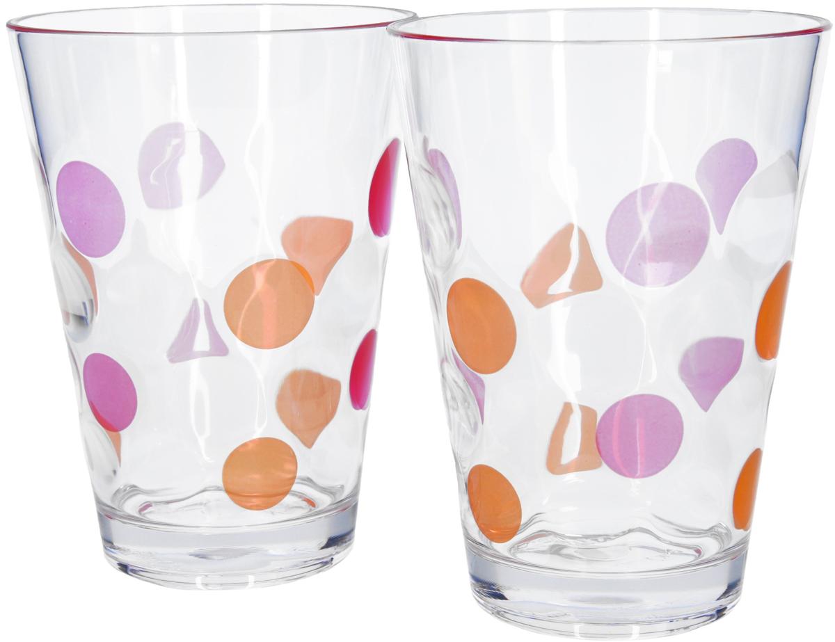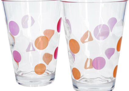 Moderne, trendige Trinkgläser aus hochwertigem SAN. Lebensmittelecht und stapelbar. In 3 Farbvarianten lieferbar. Technische Daten: Material: SAN Inhalt: 350 ml Durchmesser: 9,5 cm Packmaß: 19 × 9,5 × 12,2 cm Gewicht: 120 g Lieferumfang: 2 Gläser