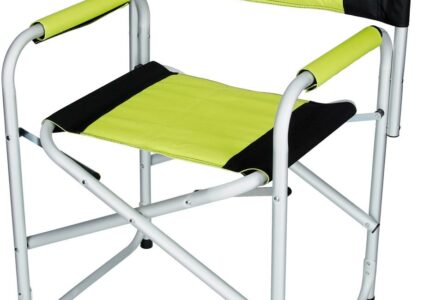 Regiestuhl mit klappbarem Gestell aus eloxiertem Aluminium. Bezug aus rutschfestem Polyester. Sitz, Rückenlehne und Armlehnen sind gepolstert. Mit Sicherheits-Klappmechanismus. Technische Daten Belastbarkeit: max. 100 kg Farbe: schwarz/grün Maße: 60 x 47 x H46/83 cm Packmaß: 11 x 49 x H83 cm Gewicht: ca. 2,3 kg