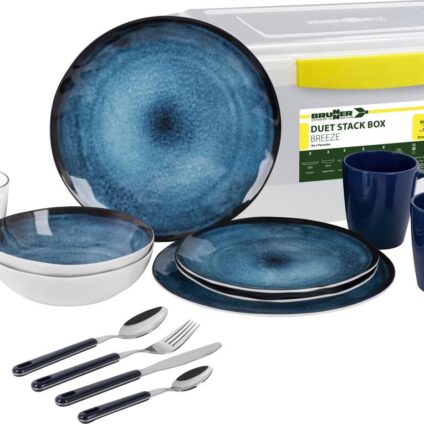 Brunner Breeze Melamin-Geschirrset, 2-Personen, 18-teilig – Camping Wagner Edition