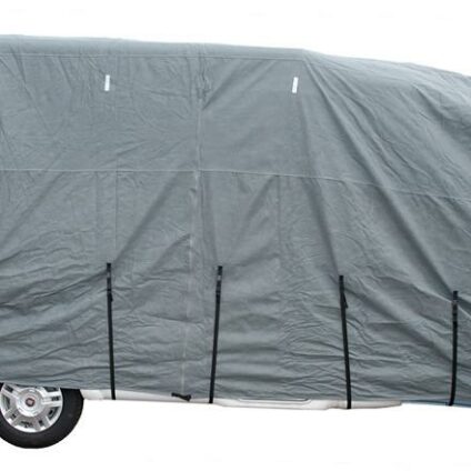 Schutzhülle für Reisemobile. Breitere und höhere Ausführung. Atmungsaktives TNT Gewebe. UV stabil, wasserabweisend und waschbar. Länge: 500-550 cm Breite: 240 cm Höhe: 270 cm Material: TNT – 4 Lagen Lieferung in komfortabler Packtasche
