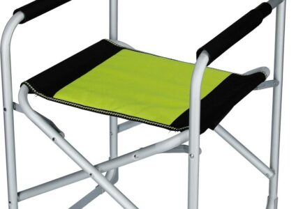 Kompakter Regiestuhl mit solidem Gestell aus eloxiertem Aluminium Bezug aus 100 % Polyester Technische Daten Belastbarkeit: max. 100 kg Farbe: grün/grau Maße: 48 x 46 x 45,5/81 cm Packmaß: 46 x 12 x 81 cm Gewicht: ca. 2,8 kg