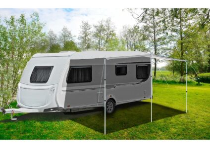 Klassisches einfaches Sonnenvordach mit Keder. Komplett mit verstellbaren Aufstellstangen. Technische Daten: Außenzelt: 300D Polyester PU Gestänge: Stahl Ø 22/19 mm Maße: 400×200 cm Lieferumfang: Sonnenvordach Keder Aufstellstangen
