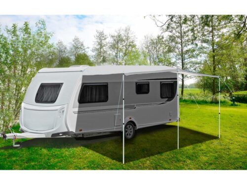 Klassisches einfaches Sonnenvordach mit Keder. Komplett mit verstellbaren Aufstellstangen. Technische Daten: Außenzelt: 300D Polyester PU Gestänge: Stahl Ø 22/19 mm Maße: 400×200 cm Lieferumfang: Sonnenvordach Keder Aufstellstangen