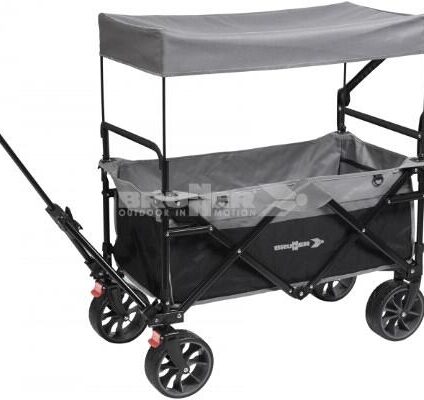 Mit extra breiten Reifen, Bremse an den Vorderrädern und hohen Seitenwänden gleitet dieser robuste Wagen mit einer Tragkraft von 120 kg mühelos über Sand, Gras und andere unebene Böden. Der Cargo Prime ist aus hochwertigen Materialien gefertigt, darunter ein stabiler Stahlrahmen und ein wasserabweisendes Polyestergewebe mit einem reflektierendem Streifen. Besondere Merkmale sind die Gewichtsverteilung, das große Ladevolumen und die großen Reifen, die einen reibungslosen und problemlosen Transport von…