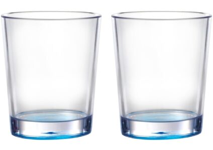 Schönes Trinkglas mit farbiger Basis und praktischem Antislip-Ring. Platzsparend stapelbar. mit Antislip Boden Techische Daten: Material: SAN Volumen: 300 ml Lieferumfang: 2 Multigläser