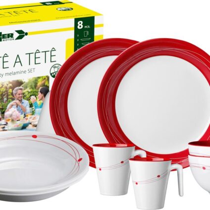 Mit dieser Geschirrserie sind Sie für jede Mahlzeit ausgestattet. Das Geschirrset mit 8 Teilen bietet alles was man für 2 Personen benötigt. Dank der Verwendung einer in den Tellerboden integrierten Antirutsch-Dichtung, wird ein Verrutschen und eventuelles Fallen der Geschirrteile deutlich erschwert. Zudem vermindert sich das störende Klappergeräusch während der Fahrt deutlich lebensmittelecht geschmacks- und geruchtsneutral tiefkühlgeeignet spülmaschinenfest bruchfest & langlebig mit Anti Slip für…