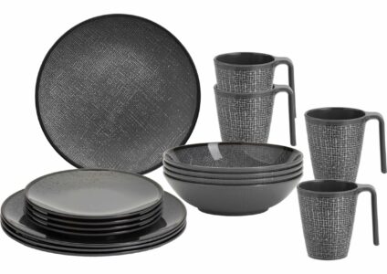 Mit dieser Geschirrserie sind Sie für jede Mahlzeit ausgestattet. Dank der Verwendung einer in den Tellerboden integrierten Antirutsch-Dichtung, wird ein Verrutschen und eventuelles Fallen der Geschirrteile deutlich erschwert. Zudem vermindert sich das störende Klappergeräusch während der Fahrt deutlich lebensmittelecht geschmacks- und geruchtsneutral tiefkühlgeeignet spülmaschinenfest bruchfest & langlebig mit Anti Slip für stabilen Halt Technische Daten: Farbe: anthrazit Gewicht: ca. 2 kg Material:…