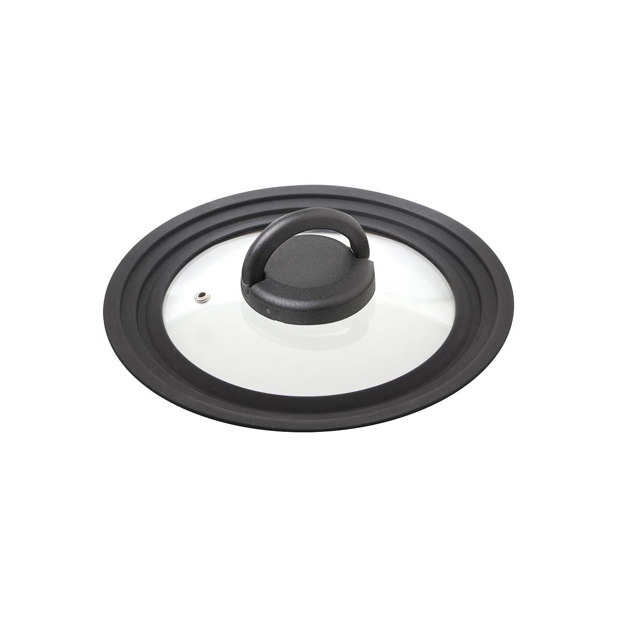 Universal Glasdeckel mit abgestuftem Silikonrand passend für Töpfe und Pfannen mit verschiedenen Durchmessern. Spülmaschinengeeignet Dampfloch zum Druckausgleich Platzsparender Klappgriff Vacublock-System kompatibel Technische Daten: Gewicht: 300 g Passend für: 22/20/18 cm Durchmesser: 22 cm Material: Glas, Silikon