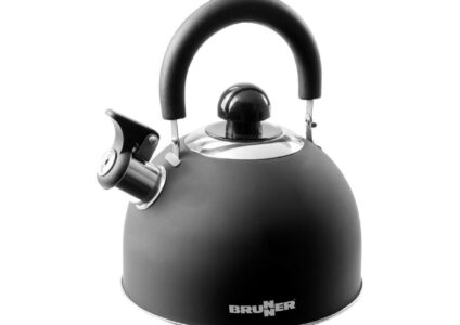 Formschöner Flötenkessel aus Edelstahl mit induktionsgeeignetem Topfboden und rutschfesten, gummierten Griffen. Elegantes Design. induktionsgeeignet mit gummiertem Griff Technische Daten: Volumen: 1,8 Liter Maße (⌀ x H): 18 × 21 cm Material: Edelstahl Gewicht: 420 g Farbe: schwarz