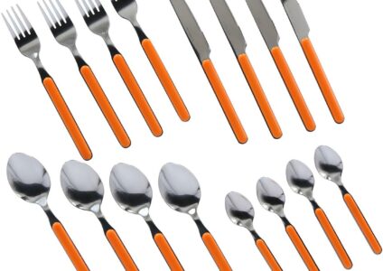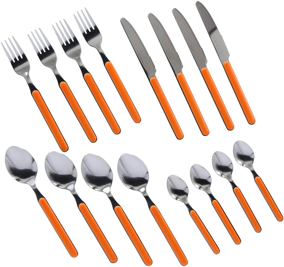 16-teiliges Besteckset mit solider, rostfreier Metallseele und formschönen Kunststoffgriffe. Spülmaschinengeeignet. Technische Daten: Farbe: orange Maße (L x B x H): 16 x 22,5 x 6 cm Gewicht: 700 g Material: Edelstahl/Kunststoff