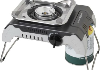 Neuer tragbarer Gaskocher mit klappbaren Standbeinen. Verwendet 450g Gewindekartuschen. Leicht, kompakt und einfach zu transportieren, ideal zum Campen oder Picknicken. Inklusive Kunststoffkoffer für den Transport. Rutschfester Rost aus hitzebeständigem Edelstahl Schwenkbare Einlassöffnung zur einfachen Montage der Gaskartusche Sicherheits-Doppelknopf mit Piezo-Zündvorrichtung Eingebaute multifunktionale Bedienelemente für den sicheren Gebrauch Ventil/Regler zur Aufrechterhaltung einer stabilen Flamme…
