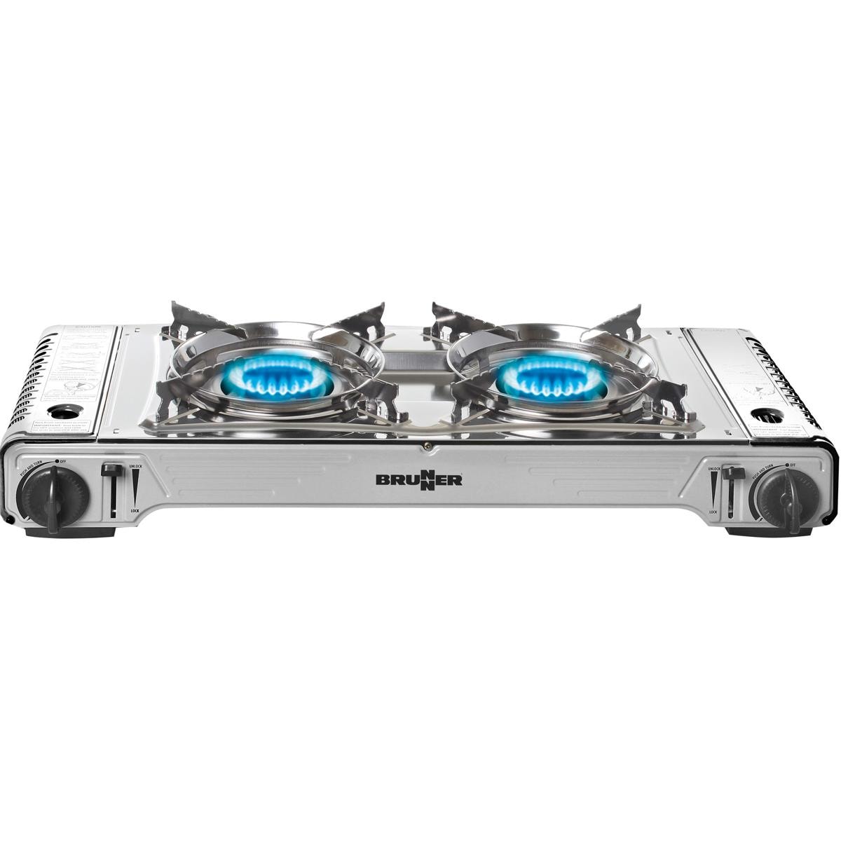 Der Brunner Devil Double ist ein zweiflammiger Kartuschen-Gaskocher mit Aluguss-Grillplatte. Durch eine Leistung von jeweils 2,2kW pro Flamme steht dem Kochen leckerer Speisen unterwegs nichts mehr im Wege. Technische Daten: Maße: 67,9 x 28,6 x H12,5 cm + Platte 53 x 28 x H2,6 cm Gewicht: 7,1 kg Piezozündung Leistung: 2x 2,2 kW Lieferumfang: Devil Double Grill Aluguss-Grillplatte