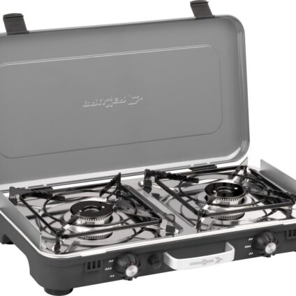 Der Kocher Devil Powerkook ist der perfekte Begleiter für Ihre Outdoor-Abenteuer, egal ob beim Camping oder Caravaning. Dieses gasbetriebene Gerät verfügt über eine hochwertige Edelstahl-Kochfläche, die mit zwei leistungsstarken Brennern mit je 2,4 kW ausgestattet ist. Dank seiner Vielseitigkeit bietet der Powerkook unzählige kulinarische Möglichkeiten zum Kochen und Grillen mit zwei antihaftbeschichteten Kochplatten: einer glatten und einer geriffelten. Das Design des Kochers ist auf maximale…