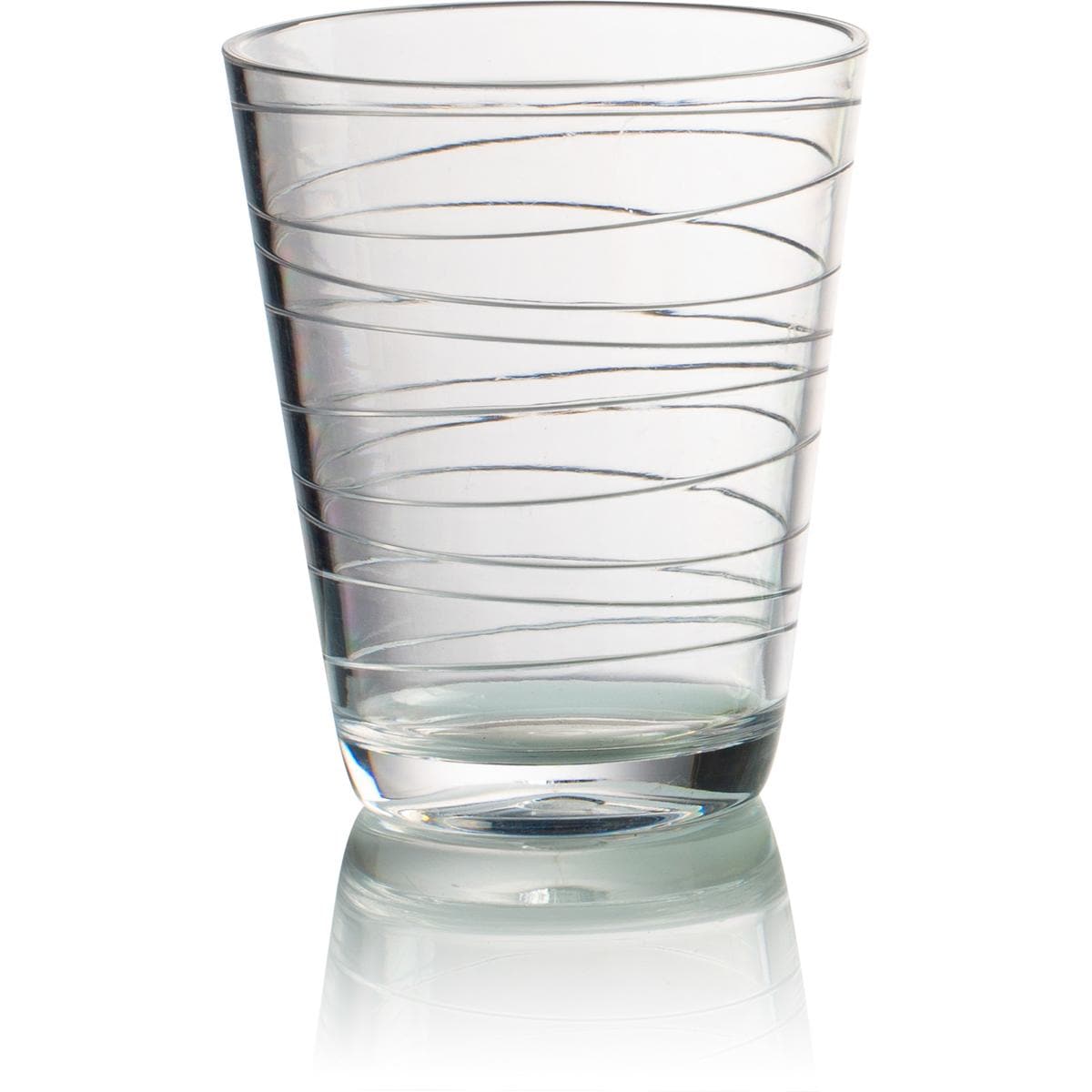 Elegantes Trinkglas-Set im Vintage-Look. Stapelbare Form. Technische Daten: Farbe: weiß Material: Polycarbonat Volumen: 300 ml Gewicht: 112,5 g Lieferumfang: Dolomit Onda Trinkglas
