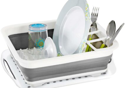 Faltbar, mit Besteckhalterung. Lässt sich flach zusammendrücken und passt auch in kleine Stauräume. Aus formstabilem Silikon oder TPU, langlebig, temperaturbeständig und spülmaschinenfest. Inkl. Tablett. Technische Daten: Farbe: grau,weiß Material: Kunststoff Breite: 36,5 cm Höhe: 12 cm Tiefe: 31 cm Nettogewicht: 510 g Packmaß: 39,5 x 31 x 6 cm Lieferumfang: 1 Abtropfgestell 1 Tablett
