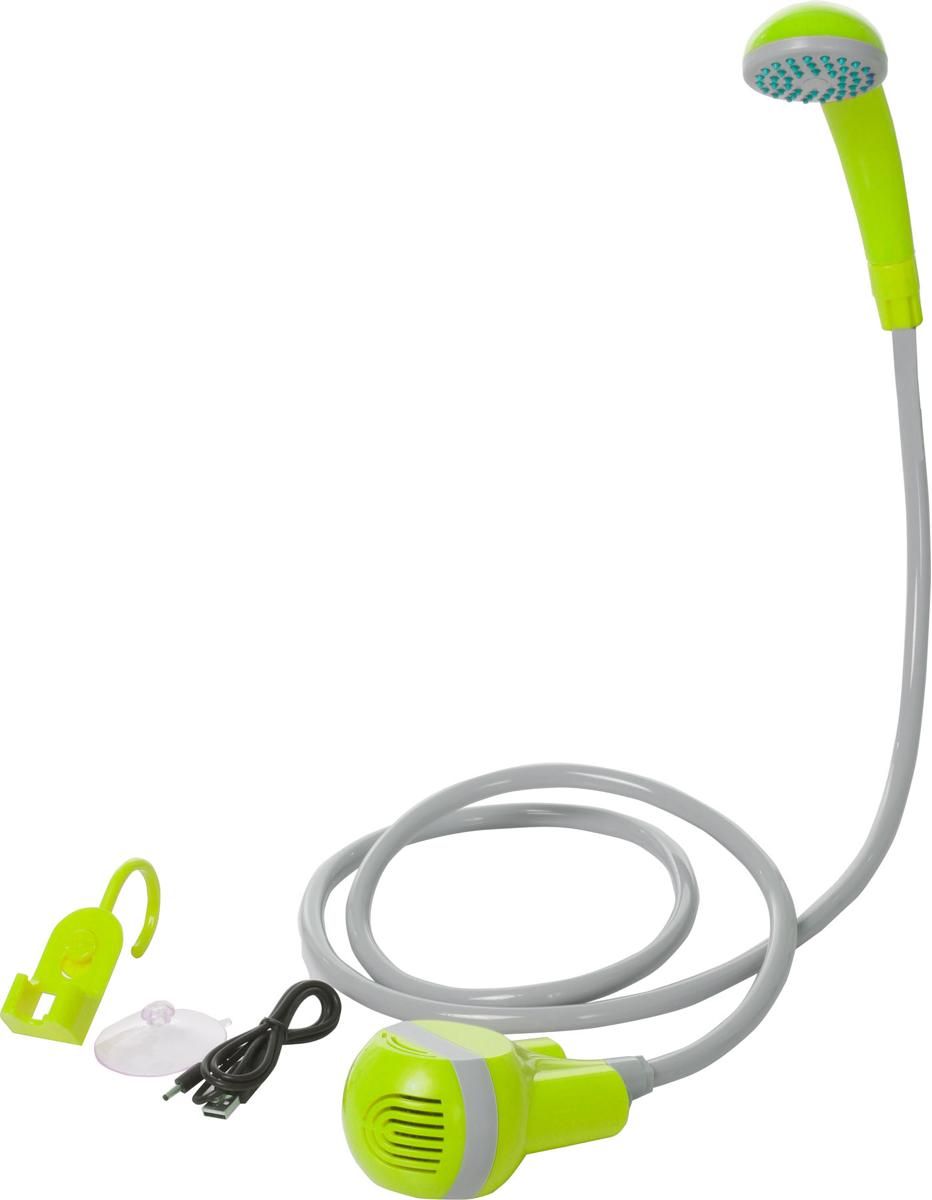 Wiederaufladbare, tragbare Outdoor-Dusche mit ON/OFF Schalter. Schnurlos und leicht. Perfekt für Camping, Strand, Caravaning und andere Outdoor-Aktivitäten. One-Touch-Betrieb Autoadapter / USB-Kabelaufladung Betrieb mittels eingebauter Lithium-Batterie Technische Daten: Akku: 2200mAh Li-Ion RG Spannung: 12 V / 230 V 4 L/min Gewicht: 620 g Schlauchlänge: 2 m