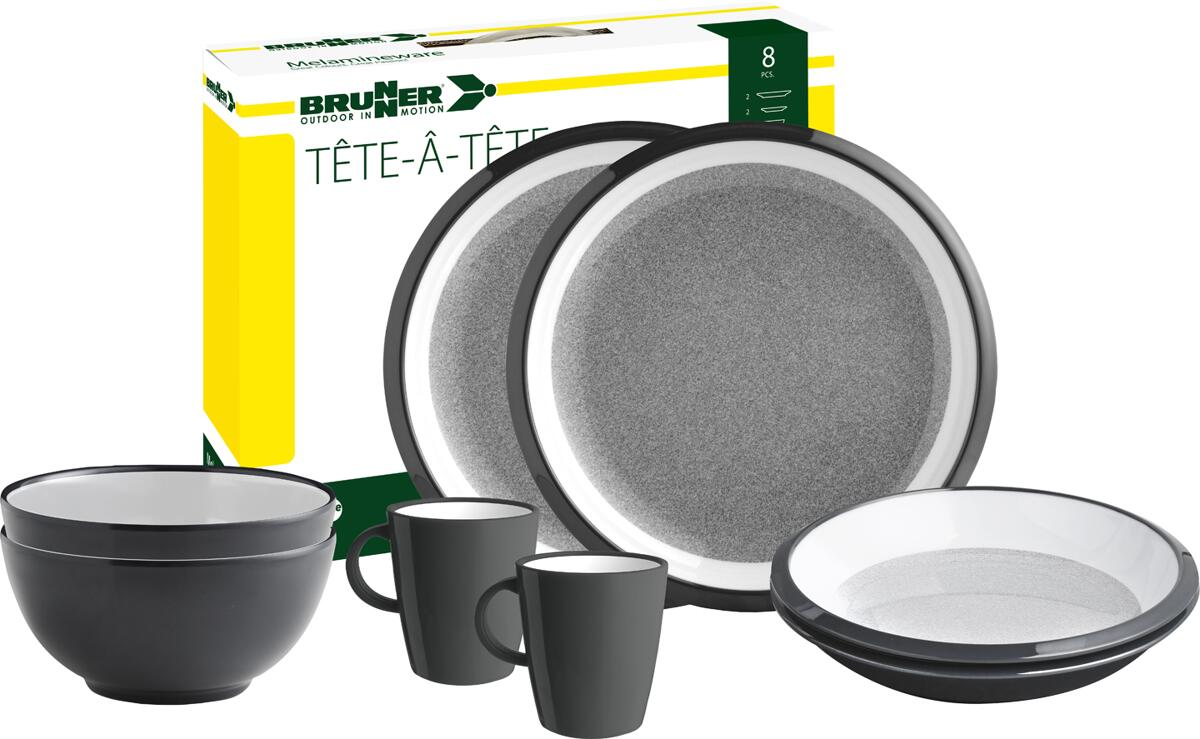 Mit dieser Geschirrserie sind Sie für jede Mahlzeit ausgestattet. Das Geschirrset mit 8 Teilen bietet alles was man für 2 Personen benötigt. Die Becher sind aus Resylin, ein farbloser Thermoplast auf ABS-Basis (Acrylnitrilbutadienstyrol), bei dem sich gute mechanische Eigenschaften mit einer guten Chemikalienbeständigkeit verbinden. 100% BPA-frei und lebensmittelecht mit ausgezeichneten Isolationseigenschaften. Dank der Verwendung einer in den Tellerboden integrierten Antirutsch-Dichtung, wird ein…