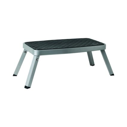 Optimal verstaubare Einzeltrittstufe mit einklappbaren Standbeinen. Mit rutschfester Trittfläche für bestmögliche Sicherheit beim Einund Ausstieg vom Fahrzeug. TÜV-geprüft Technische Daten: Maße: offen 63 x 27,5 x H22 cm Maße: geschlossen 50 x 26 x H4,5 cm Gewicht: 2,5 kg