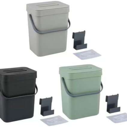 Kompakter, kleiner Abfallbehälter ideal für Wohnwagen, Wohnmobile oder Boote. Inklusive selbstklebender Befestigung und Kunststoffhalterung für Schranktüren mit max. 2,3 cm Stärke. Mit klappbarem Griff und abnehmbarem Deckel.Technische Daten:Volumen: 3 LAbmessungen: ca. 16 x 13 x 20,5 cmFarbe: farblich sortiertHinweis: Hierbei handelt es sich um eine farbliche Sortierung. Eine Vorauswahl der Farbe ist nicht möglich.