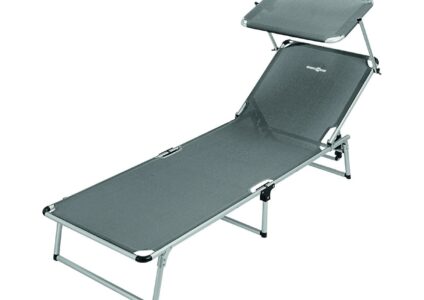 3-Bein-Sonnenliege mit praktischem Sonnenschutzdach. robust und langlebig hoher Liege-Komfort Technische Daten Farbe: grau Belastbarkeit: bis max. 120 kg Maße (LxBxH): 189 x 61 x 26 cm Material: Syntex Plus 30% PES 70% PVC Gestell: Aluminium Gewicht: 5,2 kg